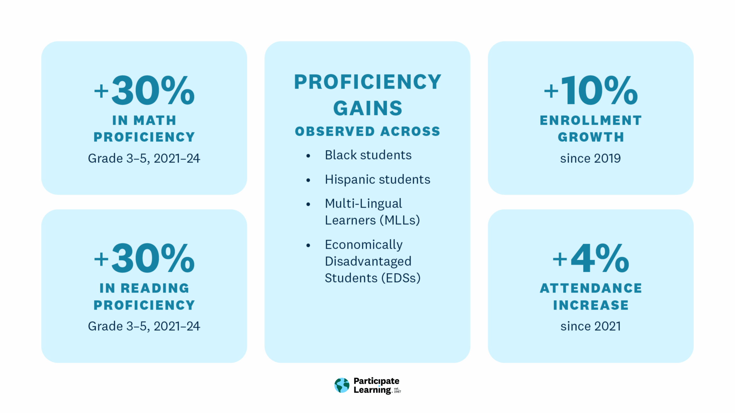 - Gains across student groups, including multilingual learners and economically disadvantaged students